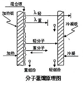 2、普通蒸馏是蒸发与冷凝的可逆过程,液相和气相间可以形成相平衡状态;而分子蒸馏过程中,从蒸发表面逸出的分子直接飞射到冷凝面上,中间不与其它分子发生碰撞,理论上没有返回蒸发面的可能性,所以,分子蒸馏过程是不可逆的。